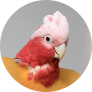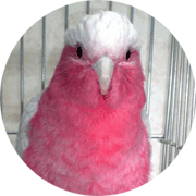 薄ピンクの冠羽、濃いピンクの胴体、羽はグレーでかわいい色をしています。